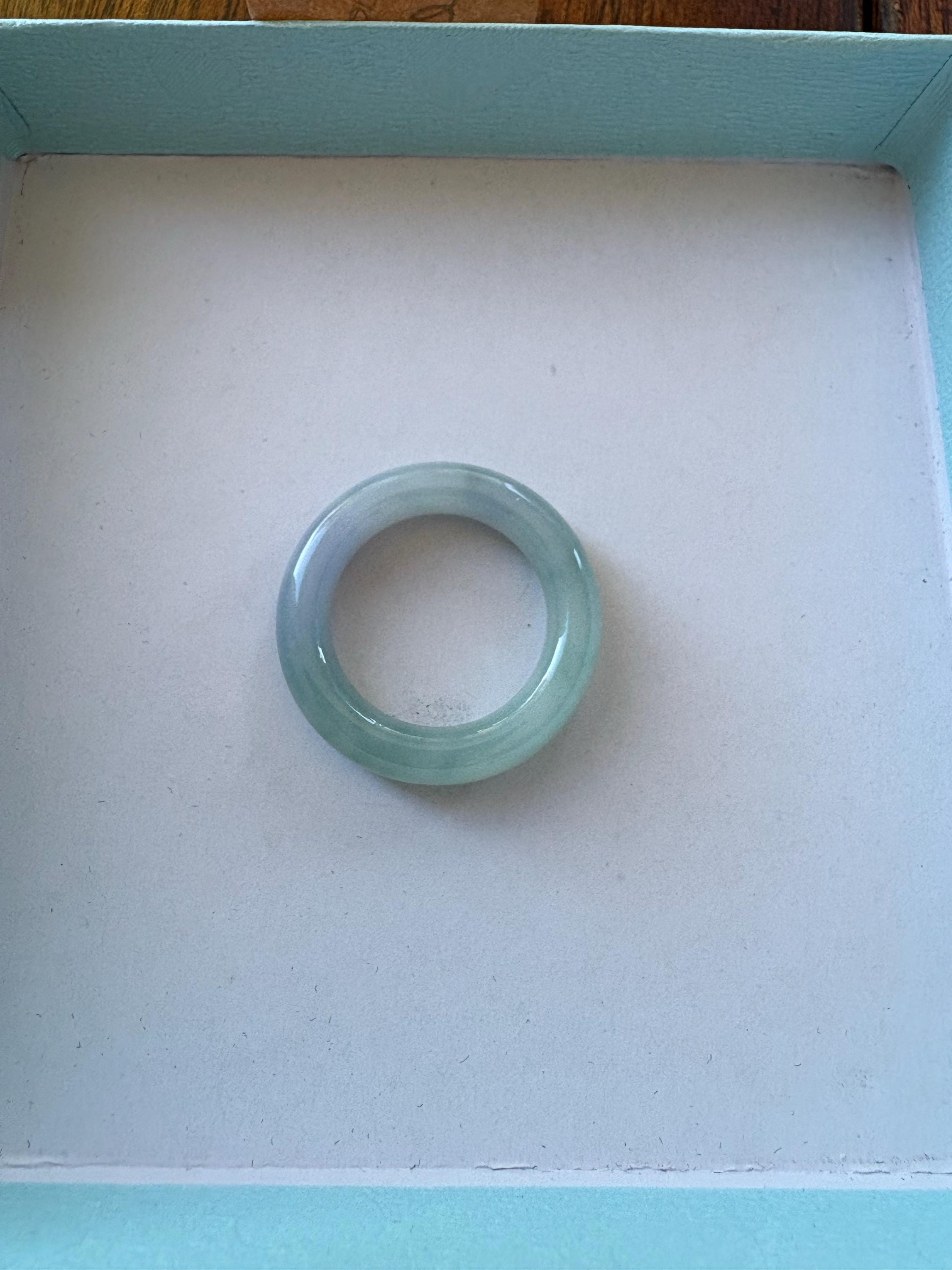 Our latest offering is a brand-new "A" graded natural Highly Translucent Burmese purple & green gradient color Jadeite Ring band, featuring a stunning natural green & purple color, showcasing icy translucent clarity, a fine, smooth, and even texture, and outstanding luster. the ring is US 7.5(17.5mm) in size. Rest assured, all the materials used are 100% grade A natural Jadeite without any treatment.