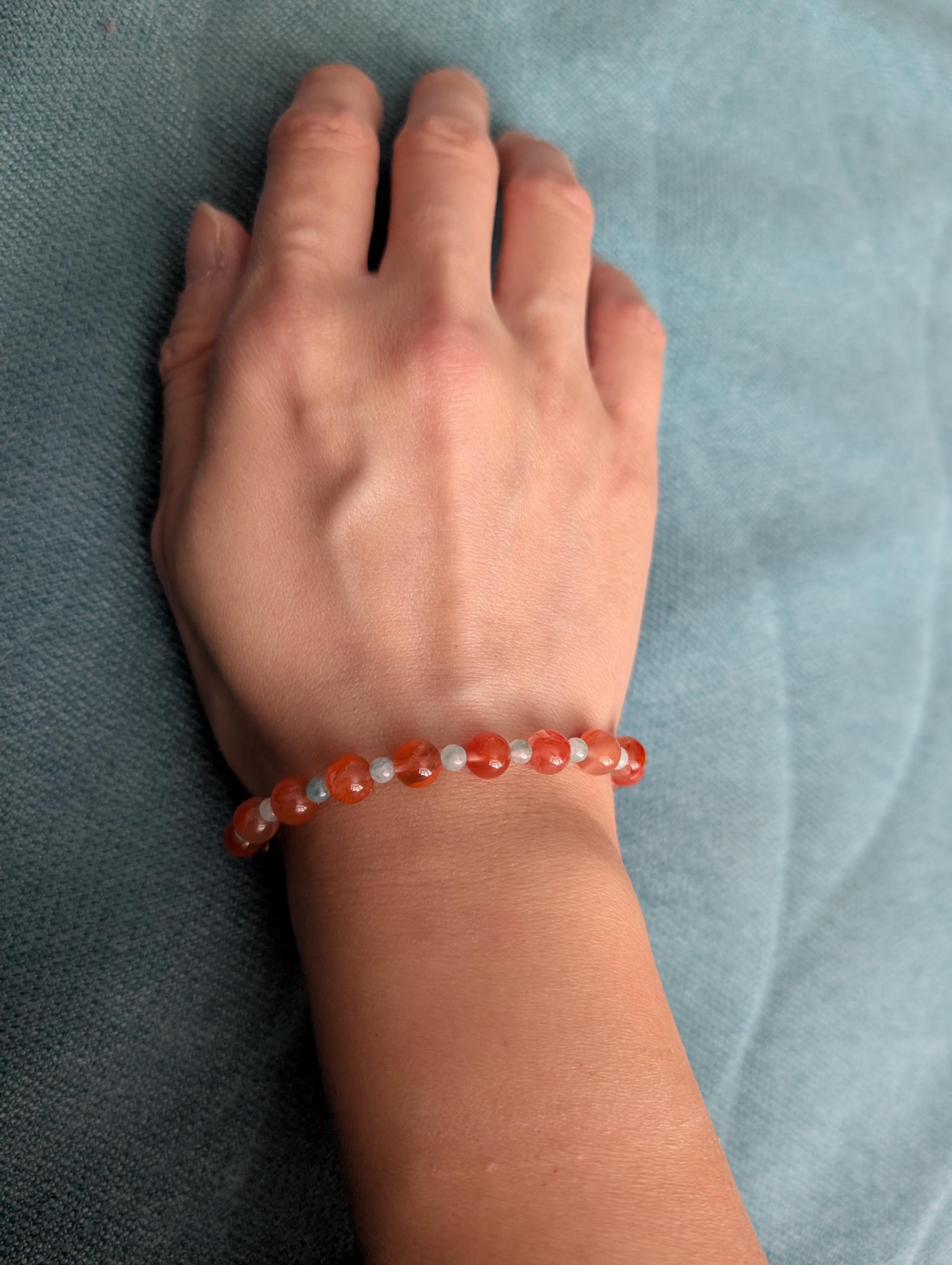 Our latest offering is a brand-new "A" graded natural Burmese Jadeite & Nanhong agate Beaded bracelet, featuring a stunning icy red & blue floral color jade beads, showcasing fine, smooth, and even texture, and outstanding luster. The jade & agate beads are meticulously matched in size, color, and quality. Rest assured, all the materials used are 100% grade A natural Jadeite and Nanhong agate without any treatment. For more details and measurements, please refer to the accompanying images and feel free to contact us for more info or adjustment requests.