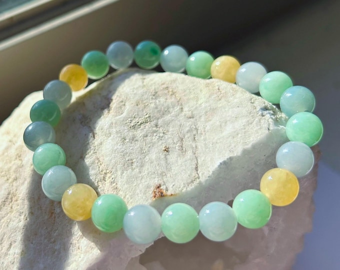 Jadeite Jade Beaded Bracelet Handmade Jewelry Gift for Her Natural Untreated Burmese Icy Translucent Type A Multicolor Rainbow Jade 8mm